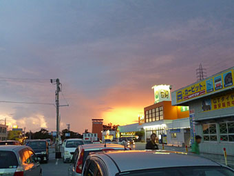 メイクマンでお父さんは鎌、お母さんは猫の餌、私達は私用の麦わら帽子とイタリア語学習用のノートを買って外に出ると燃えるような夕日に彩られた大きな空が広がっていた。その夕日を見てなぜかお父さんが「そうだ、皆でラーメンを食べて帰ろう!」と言いだし、同じ敷地内にある札幌ラーメン屋さんでなぜか皆で豚骨醤油ラーメンを食べて帰ったのだった。沖縄で生き残るためには札幌ラーメン屋とて豚骨を出さなければならないという事実、店名が「さんぱち」でもラーメンは全然380円ではないという事実を噛みしめながらも、久しぶりのラーメンを大変おいしく頂いたのだった。