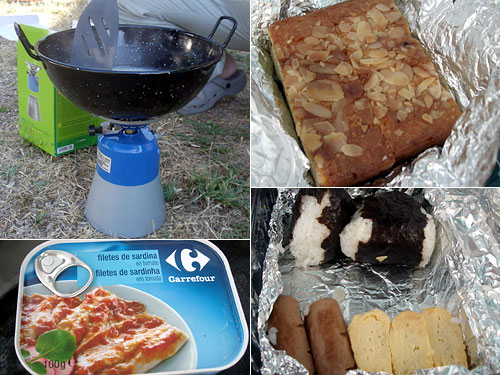 いよいよ最初のキャンプ地に到着して、初めてガスボンベを使った調理器具で調理開始!今日は緊張してお昼ご飯が喉を通らなかったのでお昼のお弁当の余りと缶詰があるのでちょっとご飯を試しに炊いてみただけだが、鍋が大きすぎたなぁという発見はあったものの快適に調理できることが判明。デザートはマドリッドでよく見たビスケットというパウンドケーキのような素朴なお菓子。