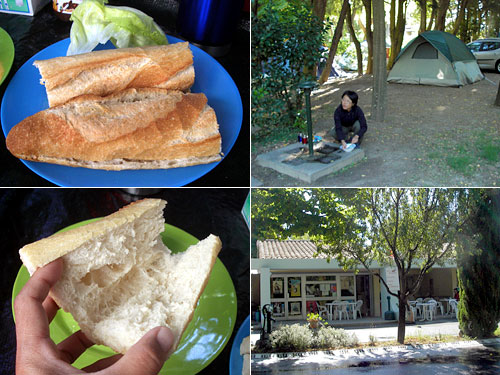 キャンプ場の軽食ショップで朝バゲットとクロワッサンを販売しているというので買いに行った。値段は2年前パリを訪れた時と同じで値上がりなしが嬉しい上に、外はパリッと中は気泡のあるフワッとした生地で軽い塩味。こんなバゲットが焼きたてなのが当たり前なフランスって何て素晴らしいんだと思わずにいられない。アヴィニヨンの朝は夏でも寒く、キャンプ場では長袖が必要な涼しさ。温かい飲み物も嬉しい。