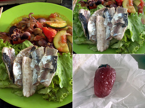 献立:タコと野菜のトマト煮こみ、いわしのソテー、バゲット、フリュイ・コンフィ