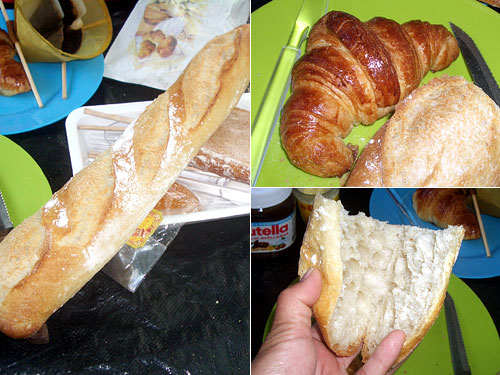 キャンプ地のバーレストランをのぞくとおやじが「家のバゲットはフランス一番だぞー」と自慢。おやじが焼いているわけじゃなさそうなのだが、本当においしそうだったので買ってみた。旨い。今までで一番旨い。カリッとした外側、しっとりと気泡のある内側。クロワッサンもバターがたっぷりで香る、香る。いやー、レベルが高いバゲットとクロワッサンだ。ちょっとだけお値段高め。