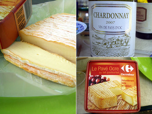 Le Pave Ocre、「オークル色の塊」という名前のチーズ。オークルはかつてプロヴァンスのリュベロン地方でよく産出された石で家の壁などによく使われている黄色からオレンジやピンク色。ブリーのように柔らかく味もソフトで臭みもなく食べやすい、と思ってワインを一口飲んだら突然臭みが鼻に来た。くっさー。これが癖になったらフランス通か?まだまだだ。