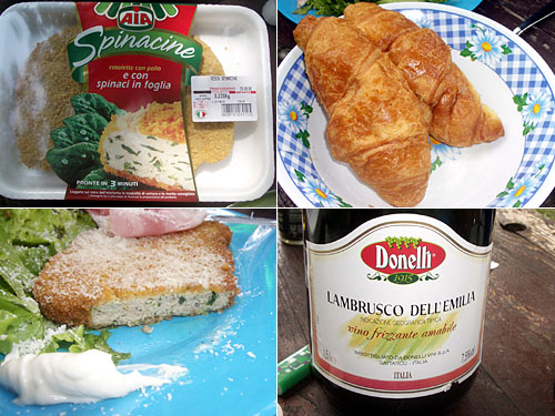 献立:チキンフライ、ハム、レタス、クロワッサン、ランブルスコ