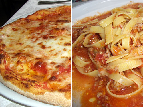 ピザはマルゲリータ。とにかく外側がカリッとして炭の香ばしさにあふれ、内側がモチモチした生地が旨い。そして当たり前のようにモッツァレラチーズ。これが外国のピザになるとなかなかモッツァレラじゃなくなるんだよねぇ。イタリア万歳だ。パスタはフェットチーネのボロネーゼ。生麺でフワフワと口当たりよく、ソースはさっぱりとしている。何となく無言になってひたすら口に運び、食べ終わってから「旨いねぇ」とため息をついた。