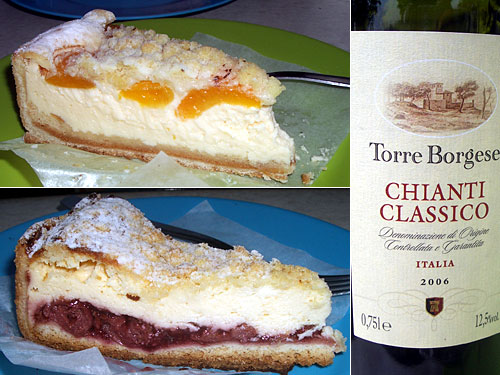 ムルナウの町で昼間食べたジェラードもレベルが高かったが同じ通りにあったケーキ屋も秀逸。特にこのチーズケーキはチーズの部分がこってり本当にチーズでフルーツとの相性もばっちり。甘さ控えめなので大きくても食べられるのだ。1つ2.5ユーロほど。下に硬い生地を使ったドイツ風ケーキはあまり好みではなかったが、この店のは別格。あー、また食べたい。今日のワインはイタリアのキャンティー。文句なし