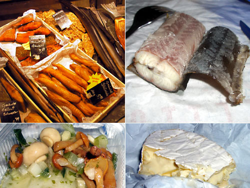 宿の近くのカールシュタットというデパートの地下食品売り場の魚売り場で魚の燻製を発見。なかでも鰻の燻製は1kgでEUR50という高級な代物。これを80gおつまみとして買ってみた。他にはきのこのマリネとチーズだ。鰻は皮は硬すぎるのでナイフで切って中身だけ食べた。身はブリブリと弾力性が強くて脂が濃い。スモークフレーバーでしつこさを抑えている感じだ。多くは食べられないがこれはイケルつまみだ。