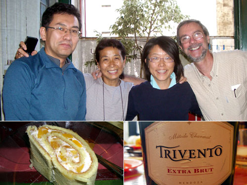 この宿に1ヶ月以上宿泊した人は伊都子さんの手作りケーキあるいはエンパナーダで見送ってもらえる特典がある。もちろんその時点で宿泊した人は全員がその恩恵をこうむれて、私達もこれまでに数回エンパナーダを頂いた。発泡酒はアルゼンチンの有名ワイナリーのTRIVENTOの物で口当たりがよくてケーキにすこぶる似合う。この2ヶ月、家族のように自由に暮らすことができたのもこの二人のお陰。