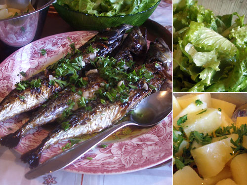 釜は木を焼いて炭にして魚を入れるタイプで南米のパラグアイ方式と一緒だ。じっくりと焼いたサバは頭まで食べられる程に火が通っていた。パセリとスライスにんにくとたっぷりのオリーブオイルをかけてマリネする。夏のサバは脂がないがこうするとジューシーで風味豊かになるのだ。サラダはオリーブオイルと塩コショウ、茹でじゃがいもも同様にシンプルな付け合せだが、いやはや旨いです。ご馳走様でした。