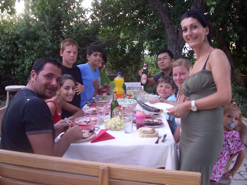 ドイツ人2家族は親戚同士。叔父さん夫婦と甥っ子夫婦と子供達総勢9名とにぎやかだ。彼らはアラメア人だと言い、初めて聞くその名前に興味津々の私達。そして日本のメーカーの名前はよく知っているものの中国と日本の文化がごっちゃな家族。お互いに初歩的な質問が活発に交わされてなかなか面白い夕べとなった。料理上手なオーナー夫人と主催者の旦那さんはこんな様子を満足気に母屋のベランダから眺めているのだった。