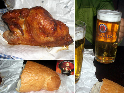 安いピザを食べられたといっても一切れじゃぁどうにも満足できないと思いながら宿に戻ろうとしたら、グリルチキン屋で「水曜日は家族でチキン!」の看板が見えた。そこで半羽チキンEUR2.5を買って、宿のウェルカムドリンクとクロアチアから持ってきたパンで2次会。これでやっとお腹一杯になった。ミュンヘン市内の宿は消防法の規制があってキッチンがなくて自炊ができない上に中途半端な外食が高い。さて、どうしたものか。