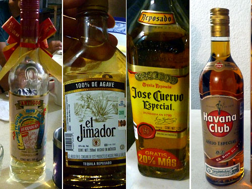 これまでに飲んだテキーラ3種。いずれもレポサードという1年未満寝かせた中間のテキーラだ。他には無色透明のブランコと1年以上寝かせたアネッホがある。左から値段の高い順に馬蹄形がマークのHERRADURA、el Jimador(ヒマドール)、Jose Cuervo。味は値段に比例してすっきりと上品になっていた。で、キューバも近いからとキューバンラムのハバナクラブ。甘く香ばしい香りで酒だけ飲むならこちらが好みだ。