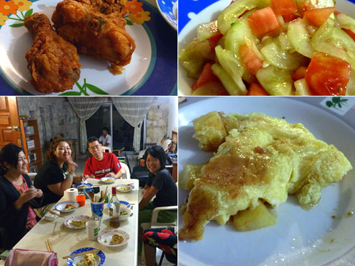 オムレツは原価が一切れ5ペソ(35円)になったので宿内の人とシェア―。溶き卵を揚げるとふっくらとして格別のオムレツになるし、茹でるより揚げたじゃがいもはさっくりふわふわで旨い。初めて自分で作ったがまずまずの成功だ。スーパーで1つ10ペソ(70円)の唐揚げとトマトときゅうりのサラダを添えて夕食とした。オムレツの売れ行きは上々で一人2から3切れ食べるのであっという間に完売。大勢なら安くて旨い!