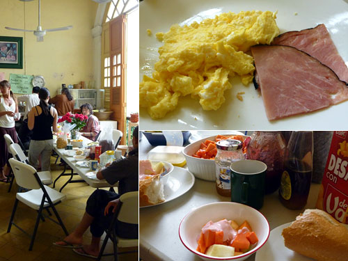 メリダのソカロに面したホステル・ソカロに宿泊しているが、ここの朝食がホステルのレベルを超えた豪華さでびっくり。フルーツ、ヨーグルト、ハイレベルのパン、牛乳、ジュース、コーヒー、好きなだけ好きなように調理できる卵、練り物ではないちゃんとしたハム、時にベーコン、チーズとホテル並みのメニューかつ高品質な食品なのだ。そのせいか滞在者は若者だけでなく年配も多い。朝食の魅力は万人を引き付けるようだ。