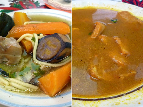 私が注文したのはカルド・デ・ポジョ。骨ごとぶつ切りにした鶏肉とゴロゴロと大きく切った人参、ミニカボチャ型のズッキーニ、タロイモ、煮込みすぎて太くなったスパゲッティーなんかが入っていた。夫はマンドンゴ。未知のスープは内臓のトマト煮。ぐにゅぐにゅしたりパリパリしたり色んな食感が楽しめるスープ。ちょっと内臓臭いが地元民にも人気のスープだ。卓上のライム、パクチー、玉ねぎのみじん切りでお好みの味に。