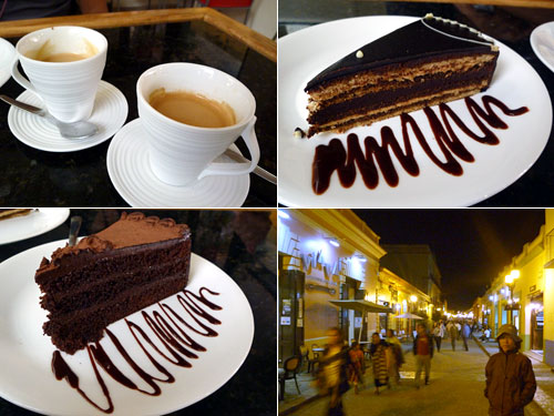 メキシコで何が不満かってシロップでお粥のようにぐちゃぐちゃになったスポンジケーキしかない事以上の不満はなかった。ところがここサンクリで驚くほど高品質のケーキ屋「VIAVAI」を発見。先進国レベルのケーキはチョコレートが濃いが甘すぎない大人の味。1切れ40ペソ(280円)と市場の食事の2倍の価格だがそれでも食べる価値ありと判断した。夜に撮影した写真しかないのが残念だが歩行者天国沿いだ。