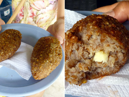 朝、カナダ人のディアナが村の食堂で作ってもらったというスナック。1つだけでいいんだけどそれじゃ申し訳ないから4つ注文したのでと私達に半分くれた。後に知ったのだがこれはキペスというドミニカのスナックで朝食から昼までに売られているようだ。お米と何か穀物をまぜて中に具として肉を入れて揚げたものだがディアナはベジタリアンなのでチーズで作ってっもらったそうだ。塩味がきいて揚げおにぎりという感じでとてもおいしかった。