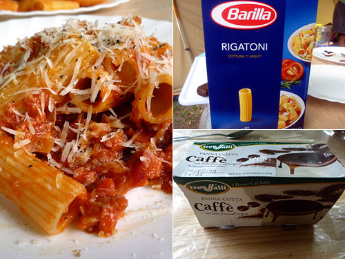 要はミートソースなのだがサルチッチャと生ハムを使う。トマトソースはPOLPAという湯むきトマトをミキシングした物を使う。スーパーで大量に売られていてご家庭の必需品のようだ。生よりも濃いのでソースが造りやすい。パスタは太いマカロニ型のリガトーニ。生ハムの香りが少しする奥深い味で大成功。デザートはまぁまぁかな。