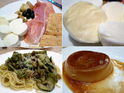 もう一度水牛モツァレラチーズが食べたいと前菜に買ってきた。他はマッシュルーム、アーティチョーク、小玉ねぎ、黒オリーブ、生ハム、ローズマリークラッカー。パスタはズッキーニを炒めてジェノベーゼソースを絡めてクルミをくだいて入れた。そもそもジェノベーゼには松の実が入っているのでクルミは違和感がないが入れなくても良かったような・・・。デザートパンナコッタは皿に出してみた。滑る。