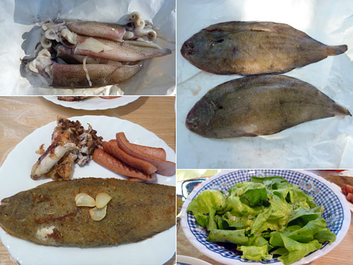シタビラメがバーゲンで2匹9.97ユーロで買えた。いつもの半額くらいなんじゃない?本来は皮を剥くけど皮ごとじっくりフライパンでソテーしたら皮もパリパリしておいしかった。それにしても肌理が細かくてむっちりとジューシーな身が単純なソテーでも十分においしい。小イカは内臓ごとソテー、これにソーセージもソテー。サラダもつけて、デザートにブリオッシュのクリーム食べたらもう下向けないくらい満腹だ。