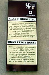 ところで私たちがマントヴァを訪れようと計画した発端はリゴレットだった。マントヴァの町並みでマントヴァ公爵時代の息吹は感じられたとしてリゴレットの家があるってんだけど、それはどーなっているんだ。