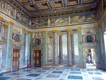 左はラファエッロ作「ガラテア」のある間、右は天井画「プシケとアモーレの結婚」(F.ペンニとジュリオ・ロマーノ作)のある間 |