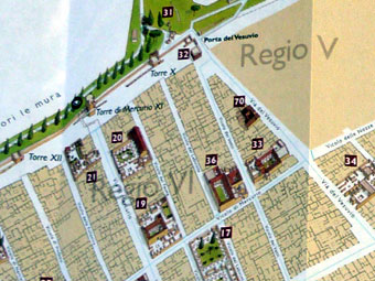 メナンドロスMenanderの家。1800平方メートルという広い敷地の邸宅の持ち主はネロ皇帝の2番目の妻の親類関係と考えられる。(上の地図51) |