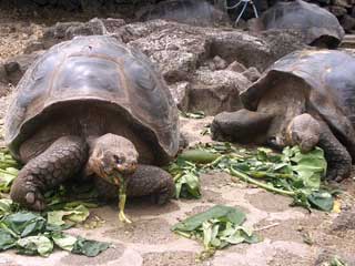 私たちはサンタクルス島の後にイザベラ島にスピードボートで渡って数日間滞在し、再びサンタクルス島に戻ってきた。10月24日にダーウィン研究所を訪れたのは昼の12時半頃だったのだが、その時間はゾウガメのお食事時間になっていて、旺盛な食欲の彼らを見ることができた。