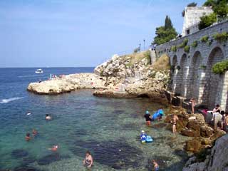 そのまま進んで行くと、人々が寝転がっている岩場ビーチになってきた。しかし、どうにも水が濁っていてあまり入る気分になれない。