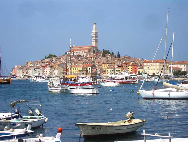 プーラからバスで40分、沿岸部を北上した所にあるロヴィニという町はヨーロピアンが夏のバカンスに訪れるイストリア半島の中でも群を抜いて人気があるとガイドブックに書かれていた。そのために、地元の人は宿もレストランも「どうやったら少しでも利益を上げられるか目を皿のようにしている」・・・とここまで読んでロヴィニにはお弁当を持って日帰りで行くことに決定。宿代金やレストラン代金で地元の人の言うなりにはなりたくないが、そんなに人気の町ならちょっと見てみたいじゃない?