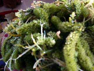 帰りがけに市場に寄る。別に買いたい物はないのだが何かと面白い発見がある。センポルナでは学校が終わった子供達がよく働いている。市場でも小さな魚や果物を子袋に入れて売りに出ている子供達がたくさんいた。見事なバラクーダ、海ブドウ、変わった色合いの野菜など今日も豊富な食材がたくさんある。